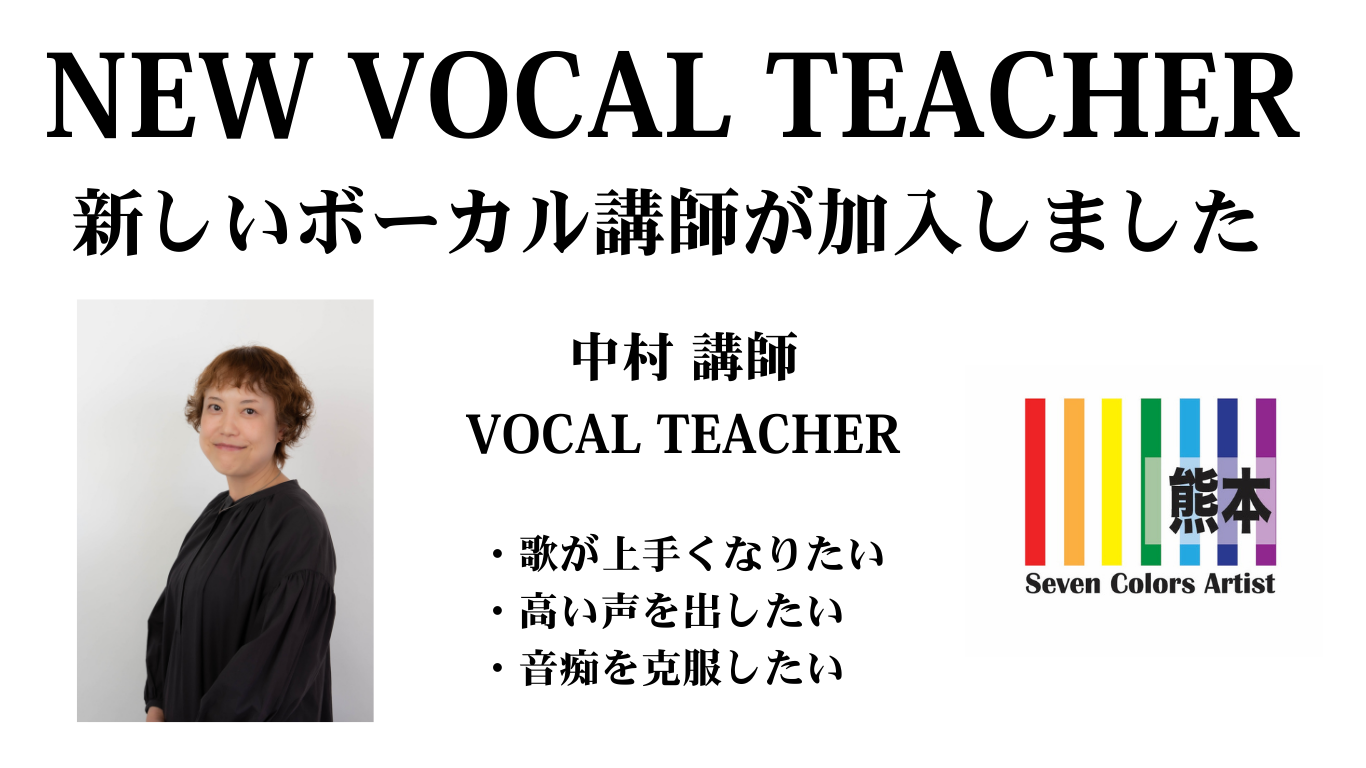 【新講師加入】セブンカラーズアーティスト熊本校に新しいボーカル講師「中村講師」が加入しました