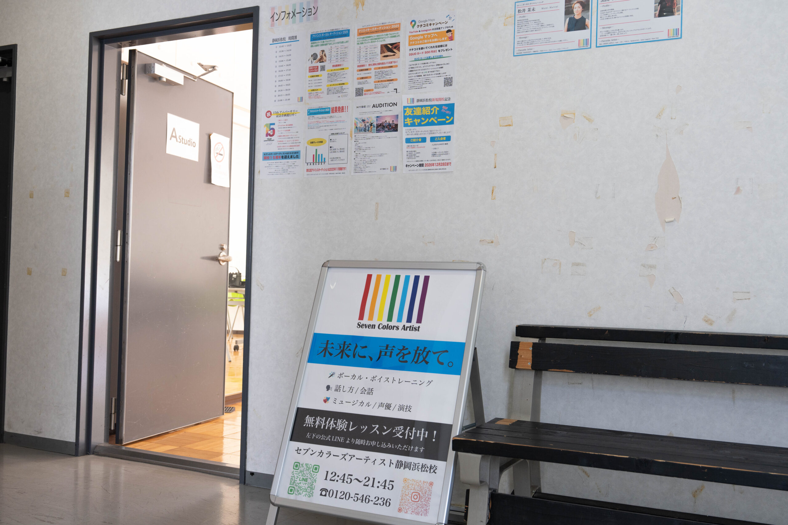 スキルアップを目指す方からプロ志望まで、幅広いニーズに対応。 浜松駅から徒歩5分、「ライブハウス窓枠」のエリア最大級の音楽スタジオを使用し最高の環境でレッスンを行います。 経験豊富な講師陣とともに、あなたの目標に向かって楽しく、確実にステップアップしていきましょう。